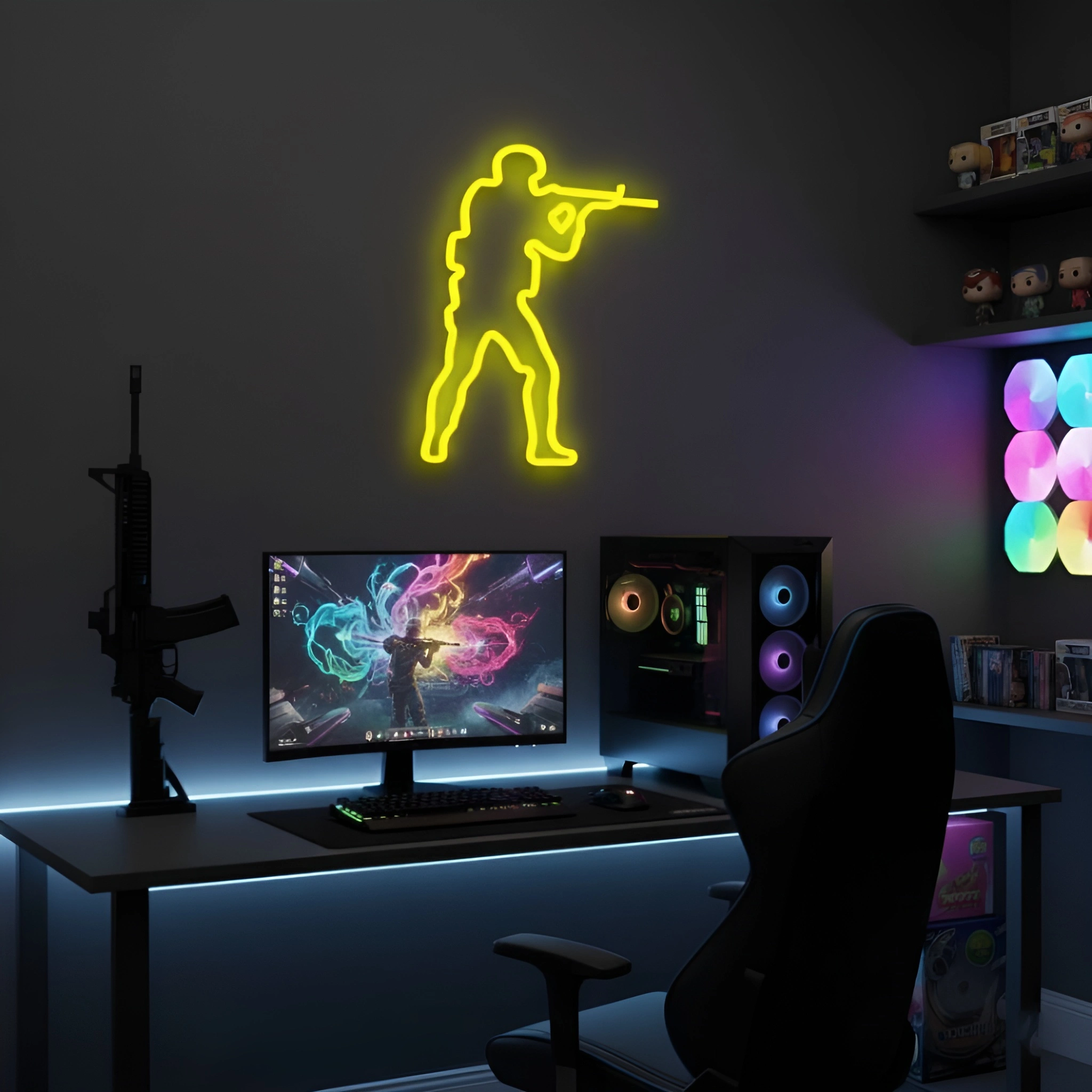 Dla prawdziwych graczy i fanów gier FPS – neon CS LED z sylwetką żołnierza to wyjątkowa dekoracja, która przenosi klimat ulubionej gry do Twojego pokoju.